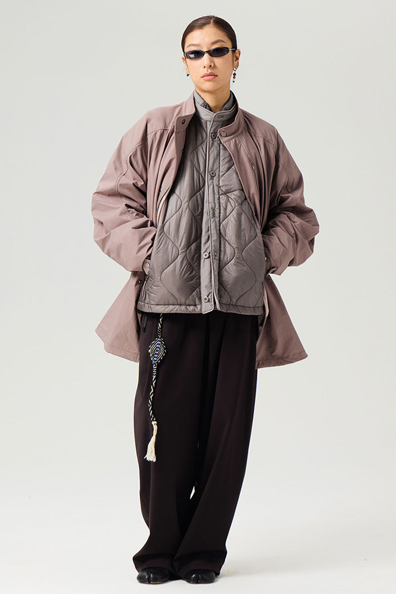 • フロントボタン: レトロな雰囲気を高めるボタン留め。ブランドのM51トレンチコートとの重ね着も可能です。