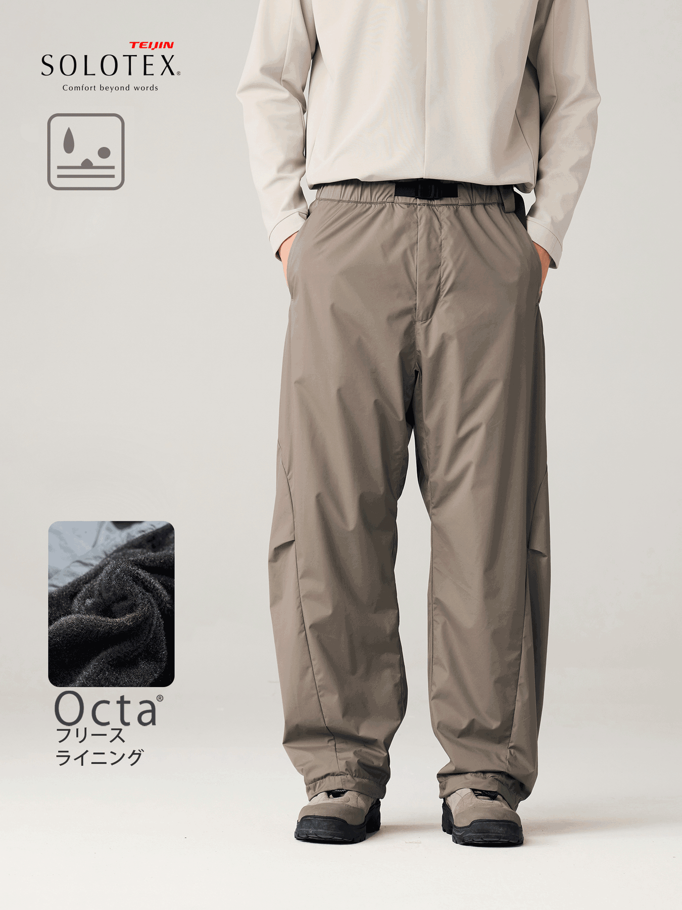 表生地には、四方伸縮性に優れたSOLOTEX素材を採用。軽い撥水性と高い通気性を備え、日常生活から様々なスポーツシーンまで、自由な動きを妨げません。肌触りが良く、快適な着心地が特徴。