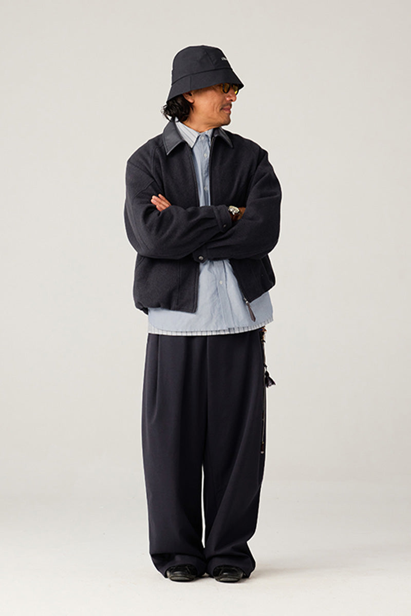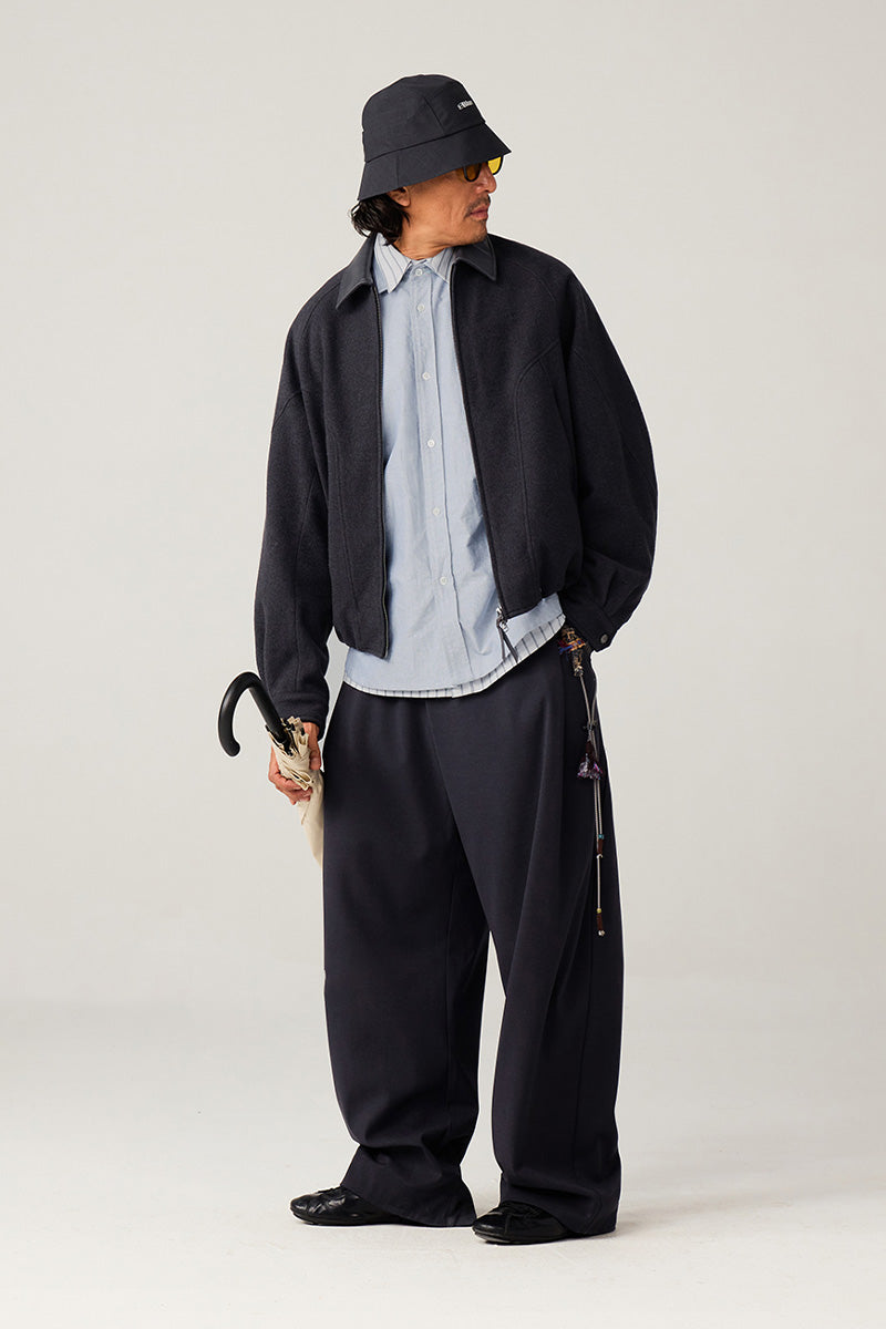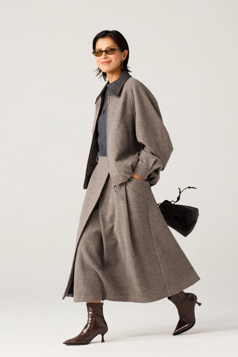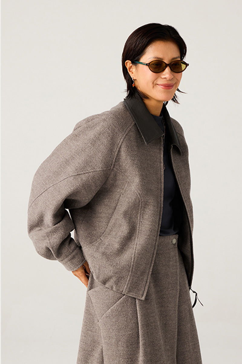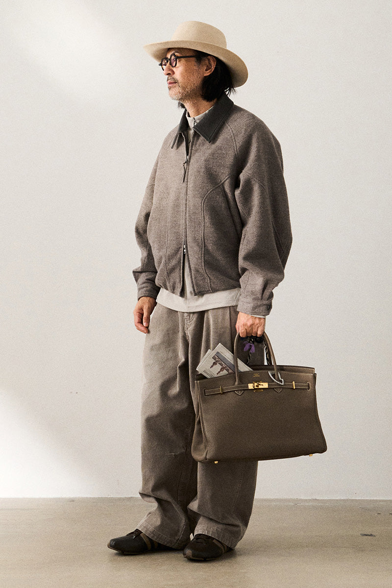 表地には高級混紡ウールニット生地(ウール51%)を使用。優れた垂れ感と挺括感を兼ね備え、通勤時の利落さとカジュアルシーンでのスタイリッシュさを両立。