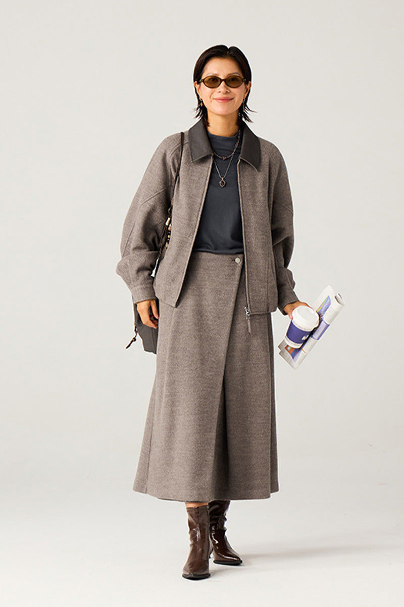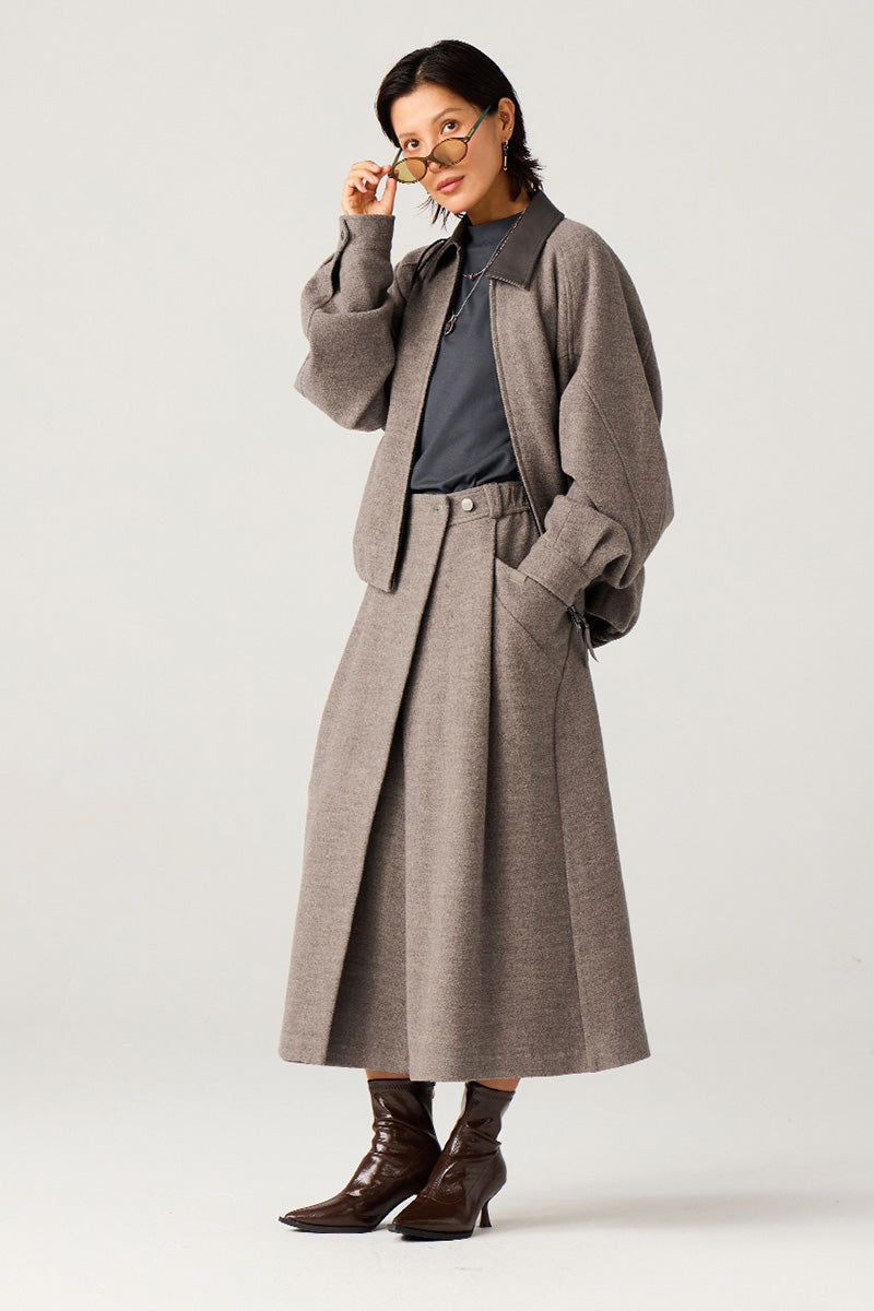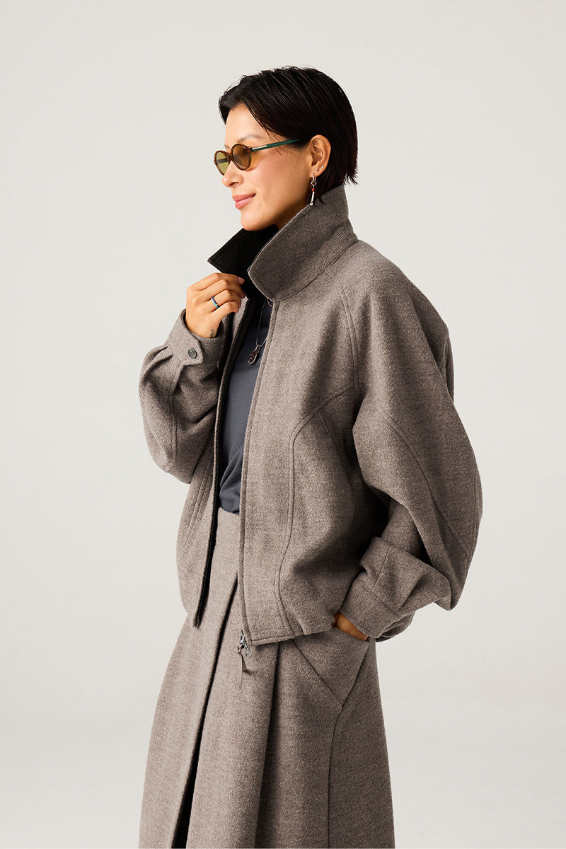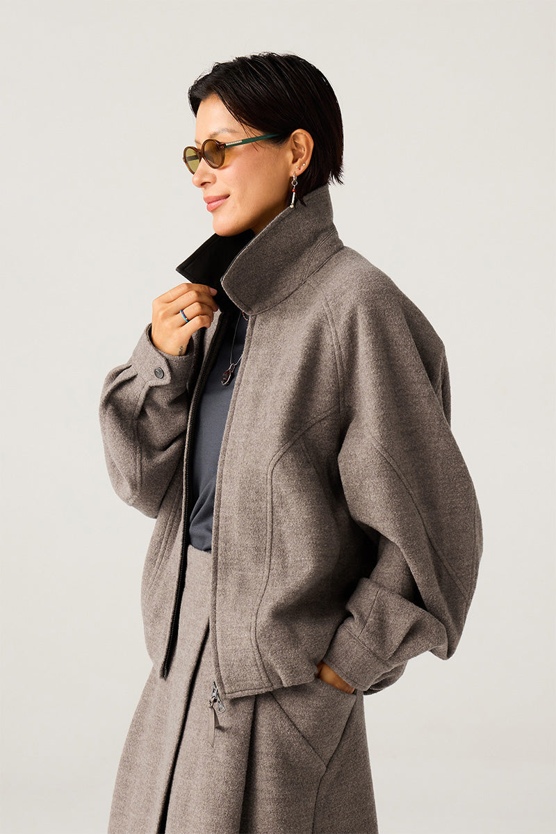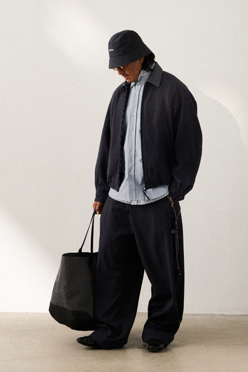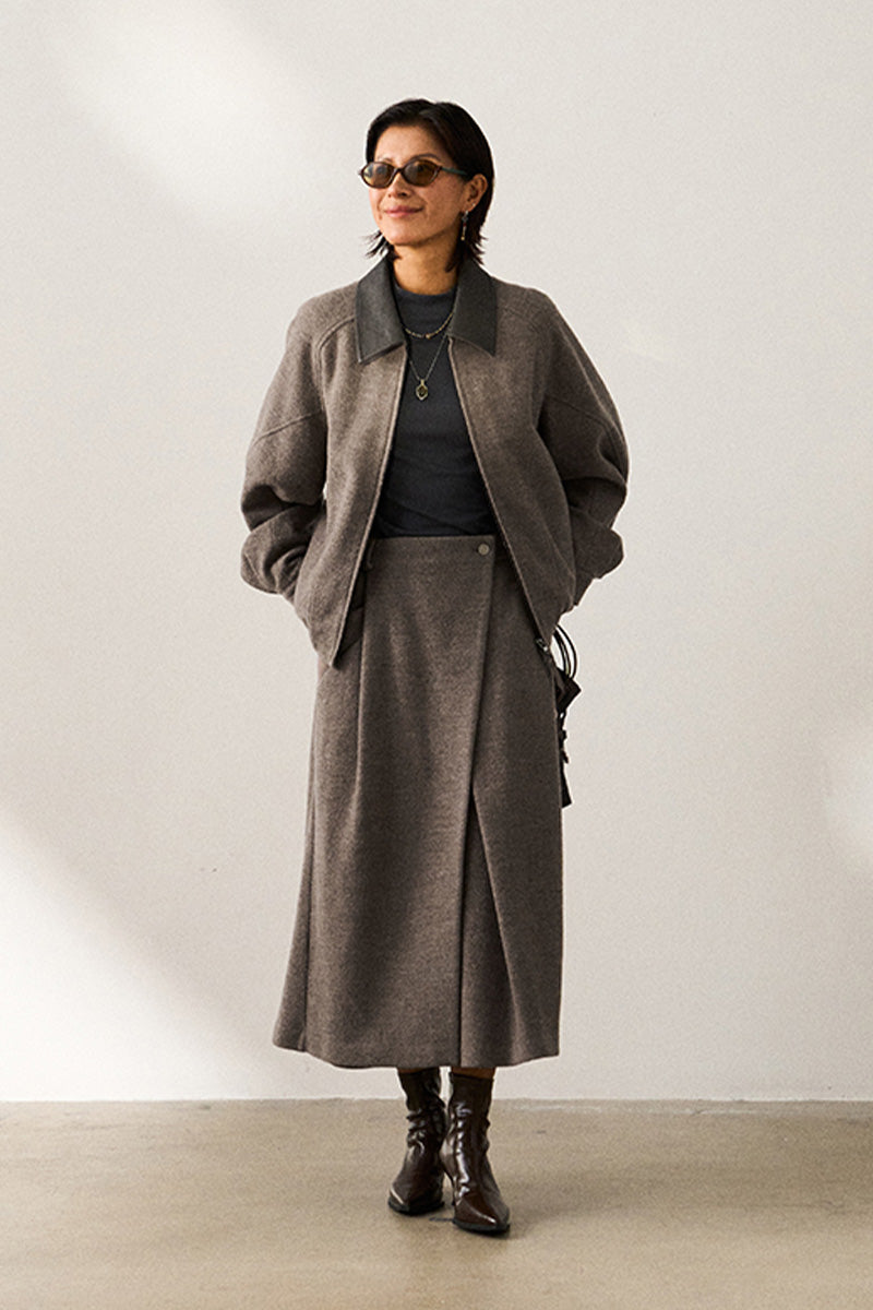 表地には高級混紡ウールニット生地(ウール51%)を使用。優れた垂れ感と挺括感を兼ね備え、通勤時の利落さとカジュアルシーンでのスタイリッシュさを両立。