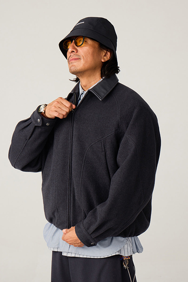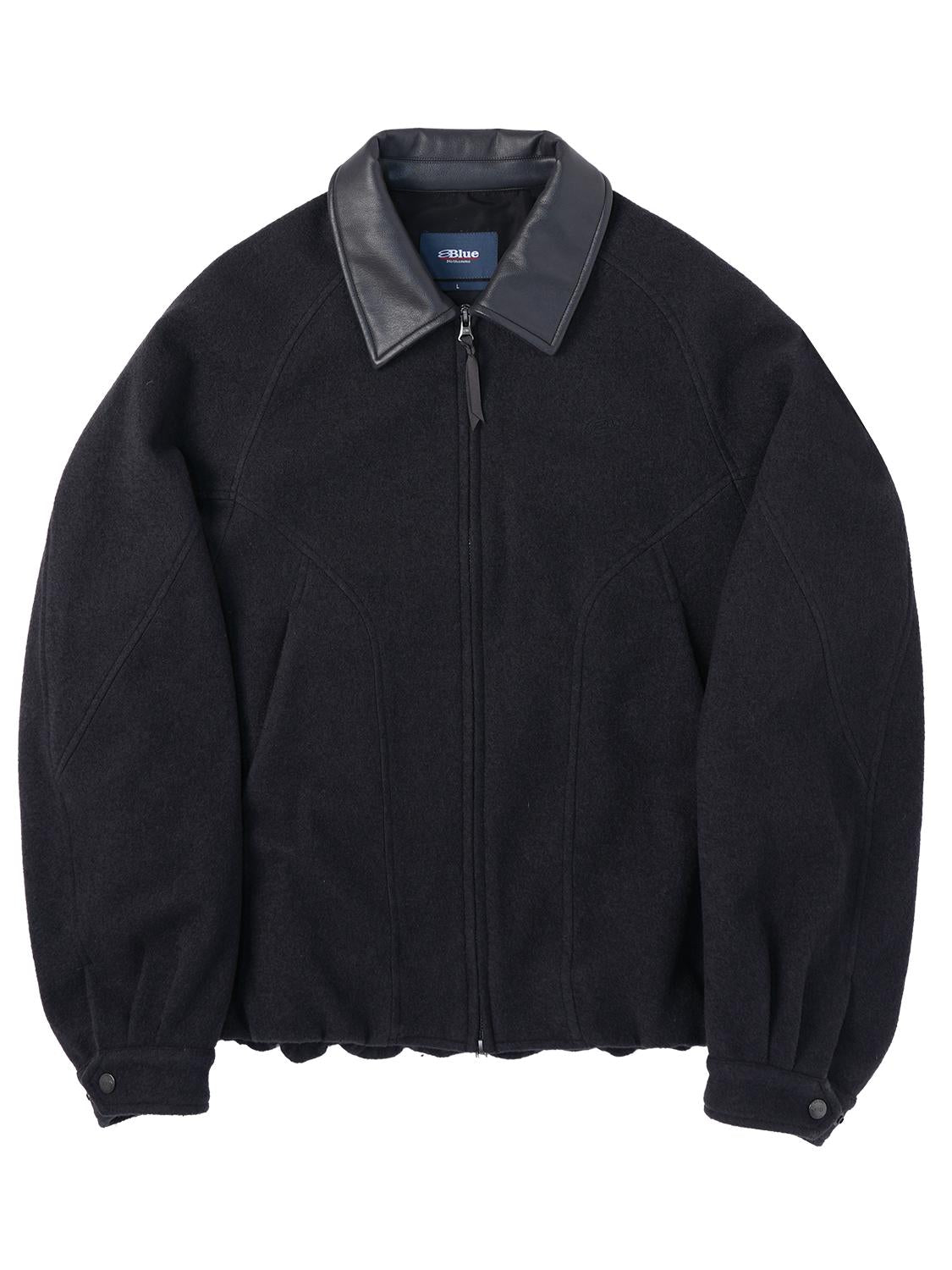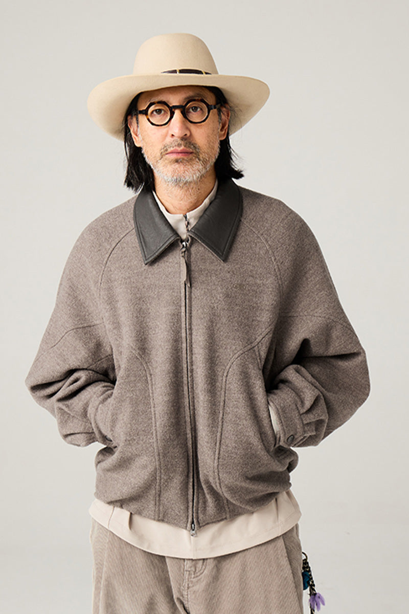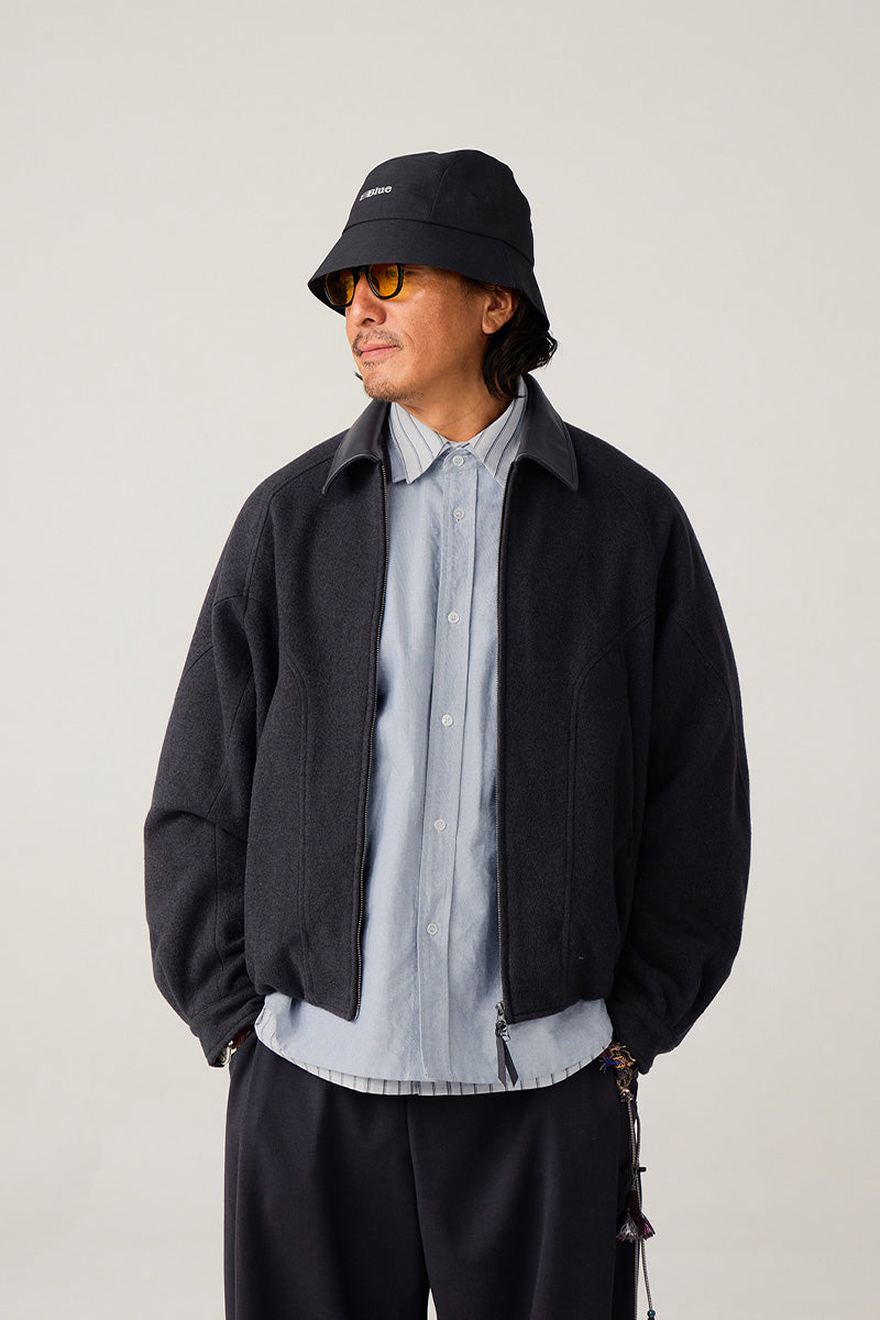 異素材カラーブロックのレザーカラー:本体と対比するカラーの革調襟が、ヴィンテージ感とモダンなトレンド感を融合。クラシックでありながらも、現代的な存在感を放ちます。