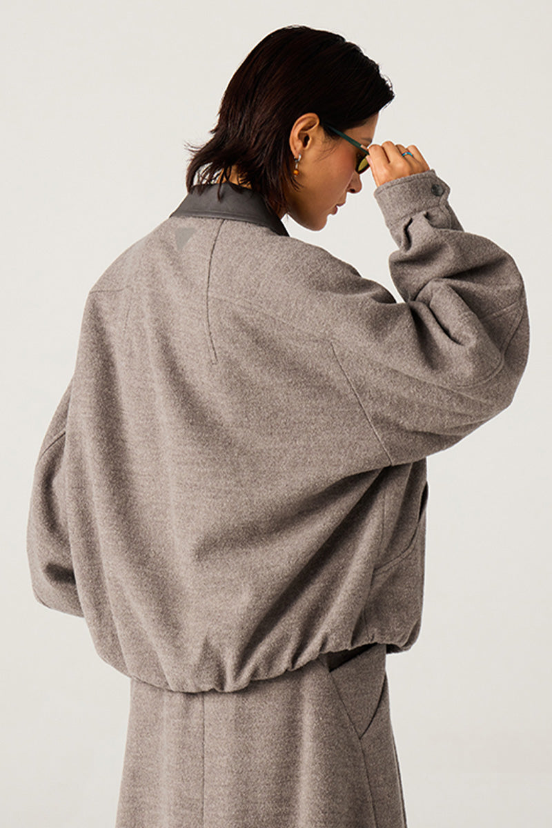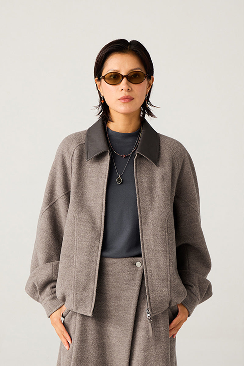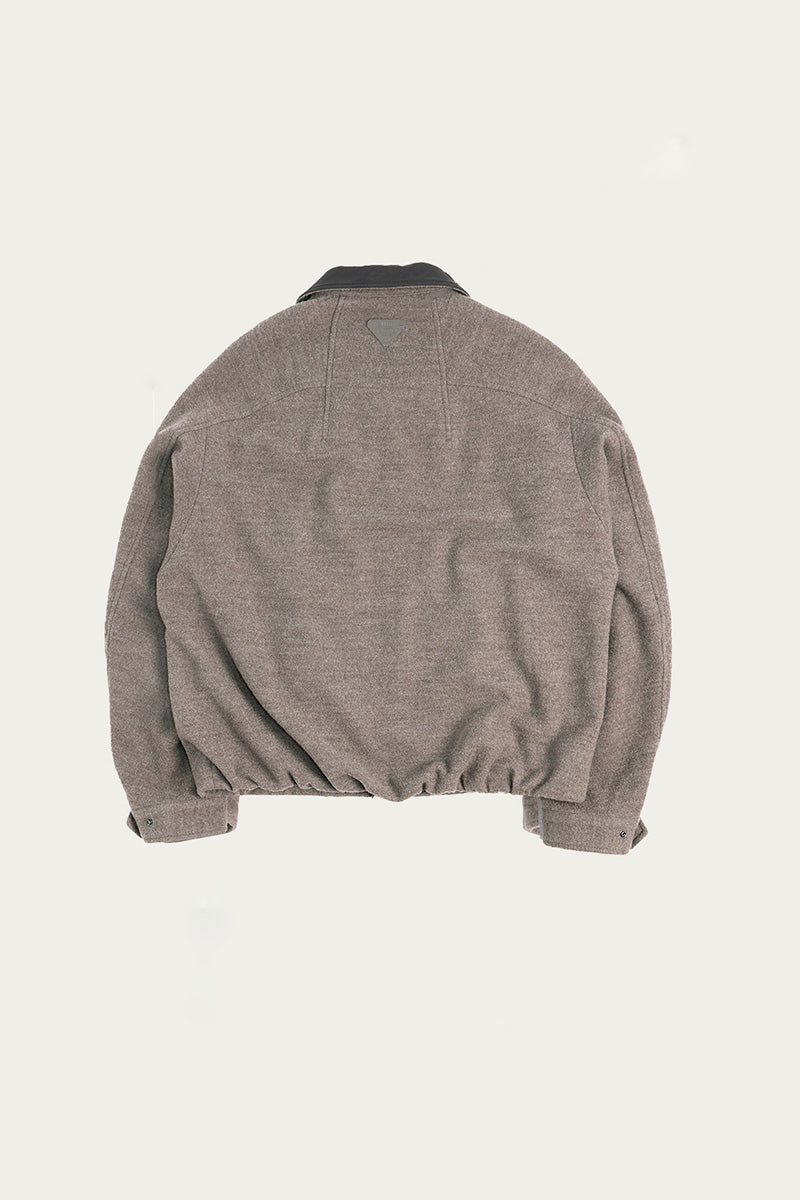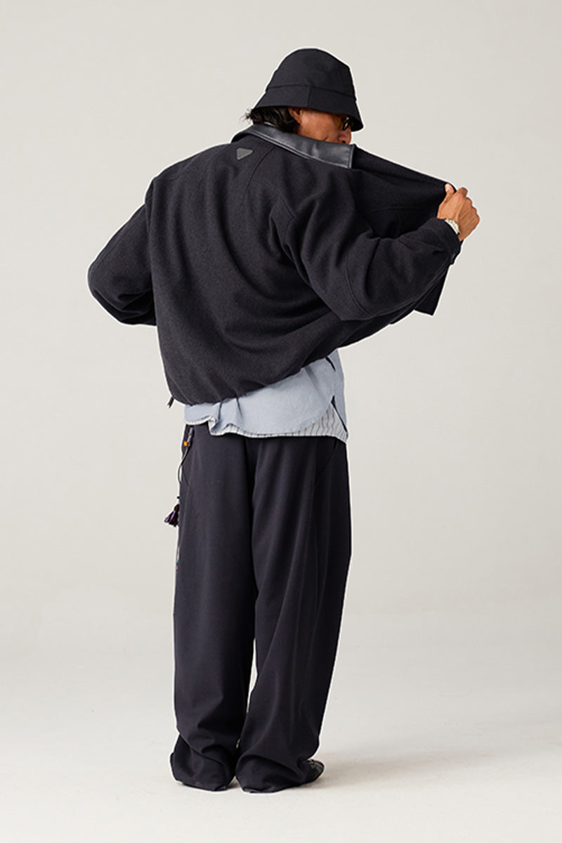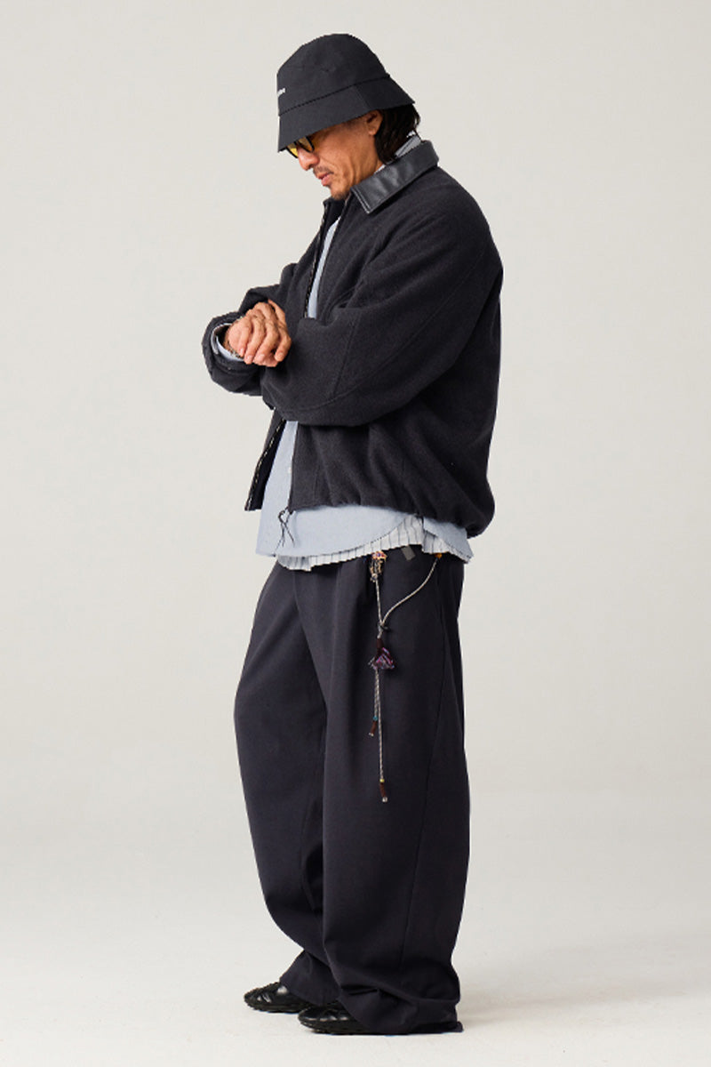 異素材カラーブロックのレザーカラー:本体と対比するカラーの革調襟が、ヴィンテージ感とモダンなトレンド感を融合。クラシックでありながらも、現代的な存在感を放ちます。