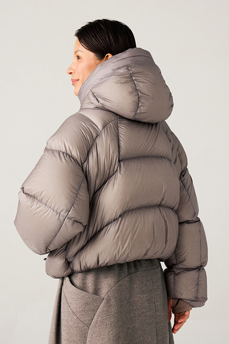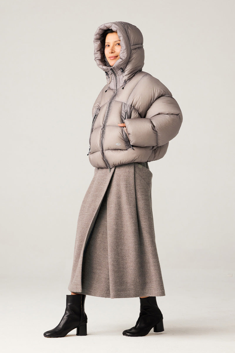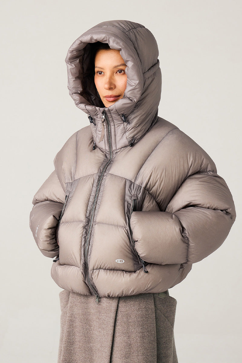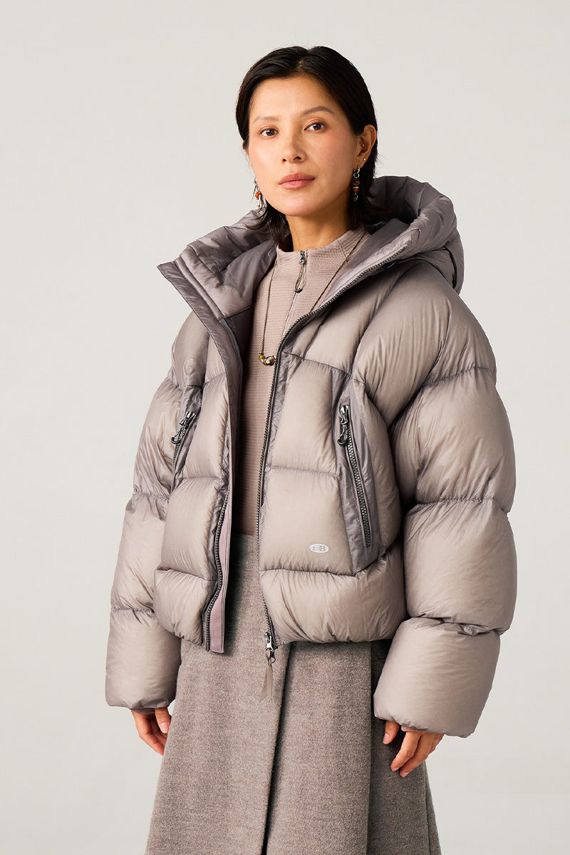 完成品には軽量な「無胆式」直充填ダウン工艺を採用。輸入COATS縫い糸と極細縫い針を組み合わせ、ダウンの抜け毛率を大幅に低減。クラシックなショート&ワイドのシルエットにフードデザインを融合し、高グラム重のグースダウン填充により、保温性とふっくらとしたボリューム感を両立。快適性とスタイリッシュなデザインを兼ね備えています。