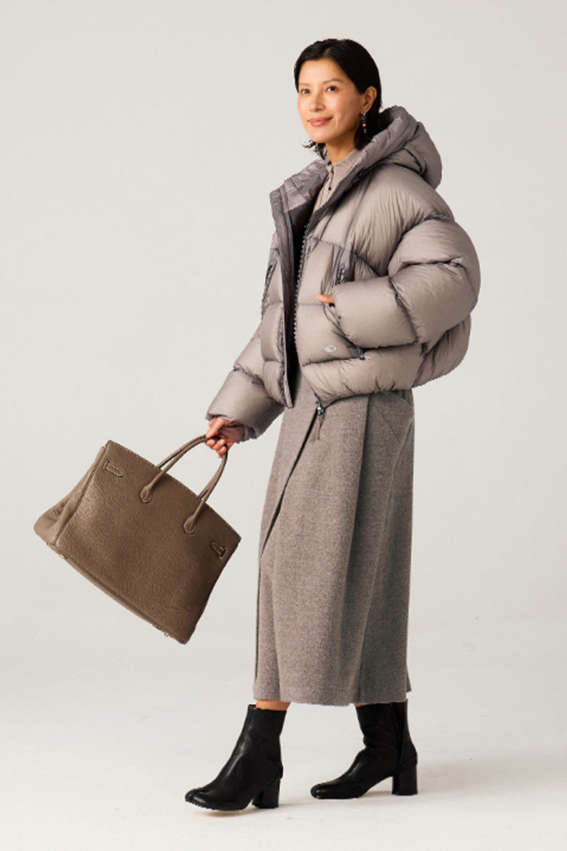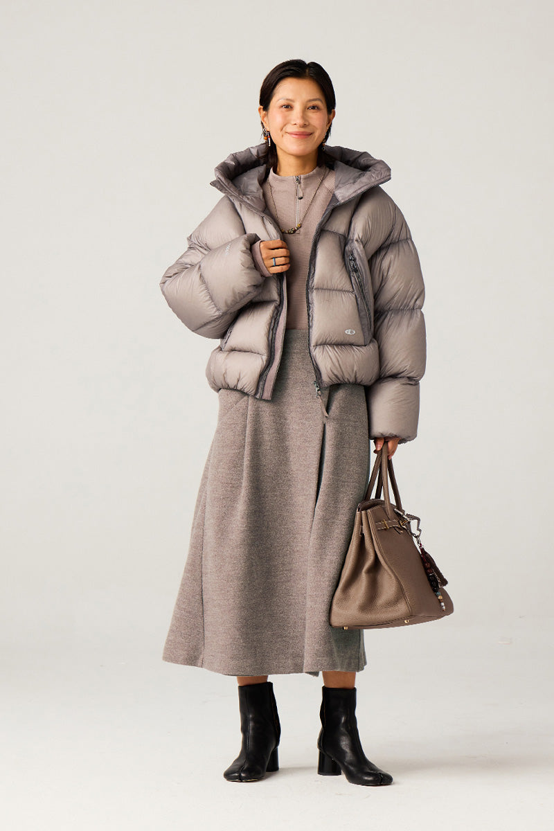 ショート丈は女性のためにデザインされ、スタイルバランスを优化。前後身ごろにはブランドの象徴である「八」の字型の分割構造を採用し、よりファッショナブルなシルエットを創出。