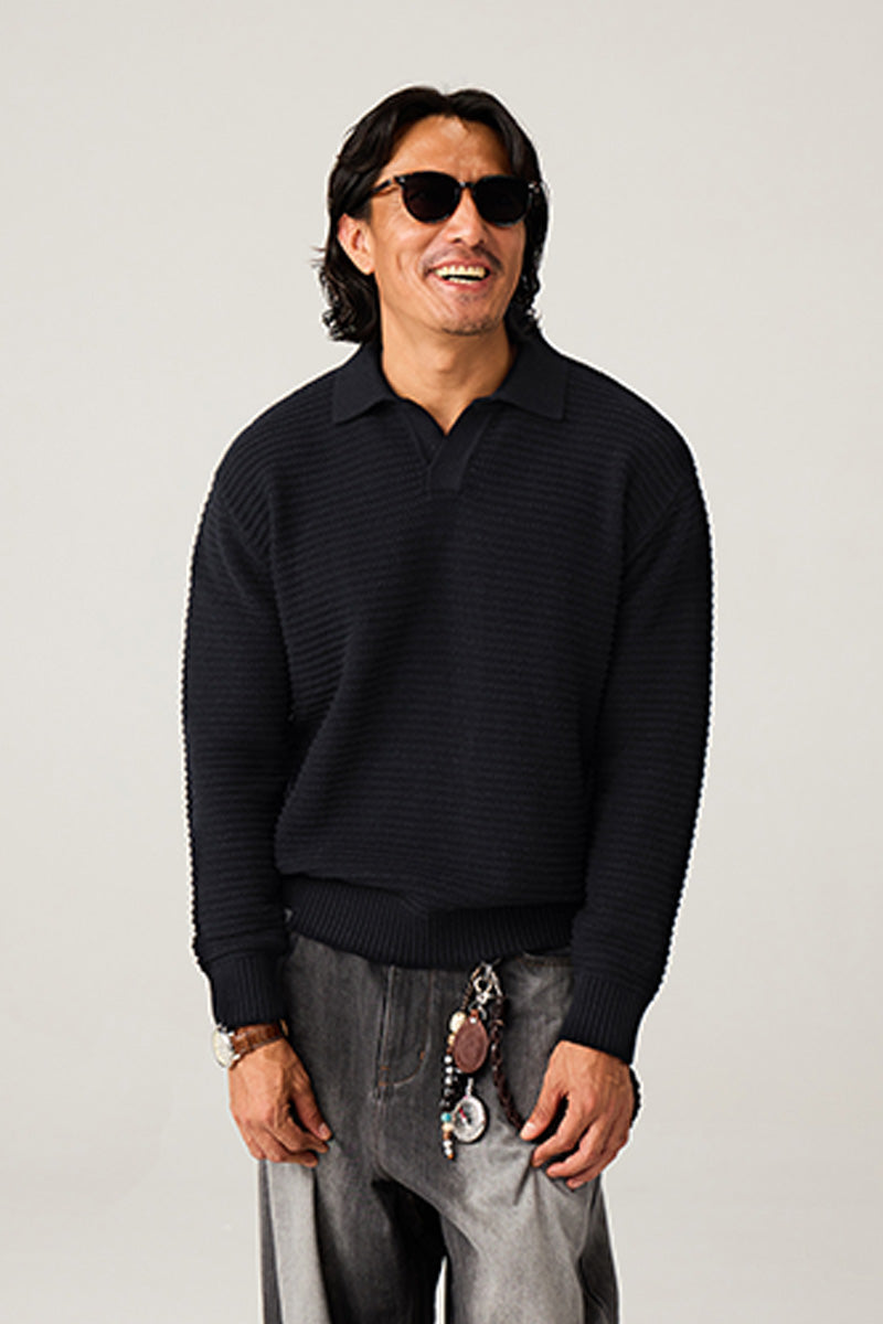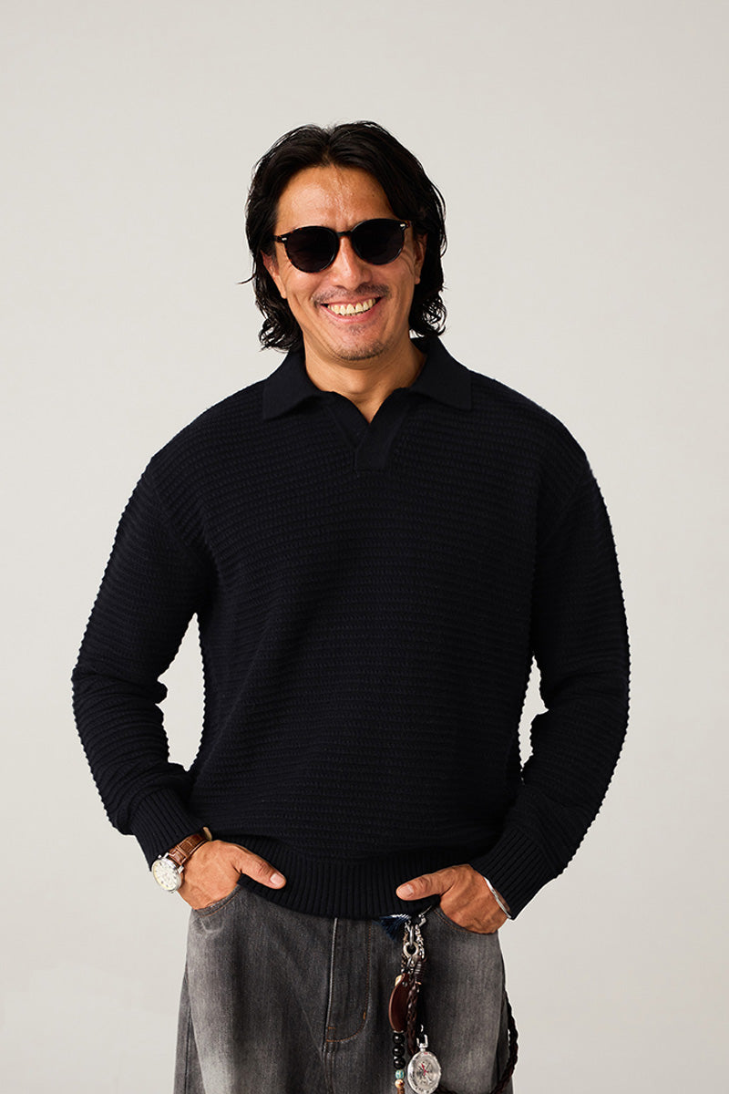 POLOカラー仕様の精緻な襟型:着脱がスムーズで、スタイリッシュな印象を与えます。カジュアルからビジネスカジュアルまで幅広いシーンに対