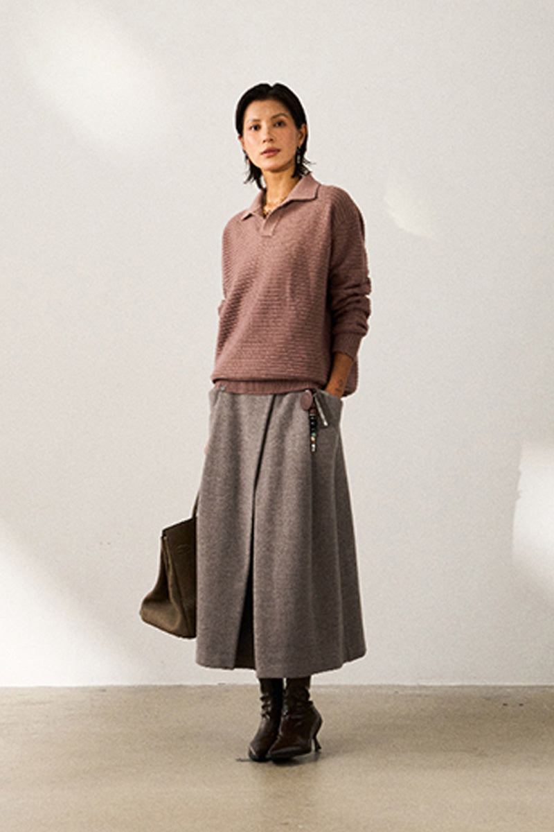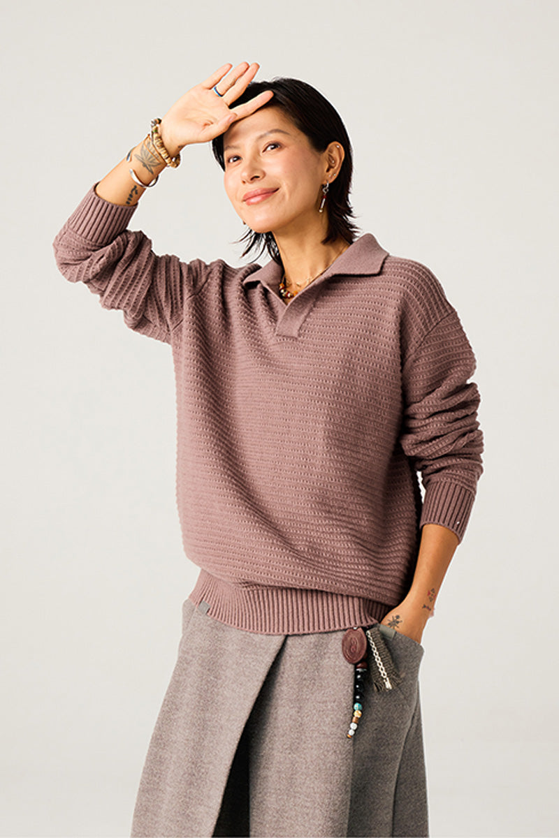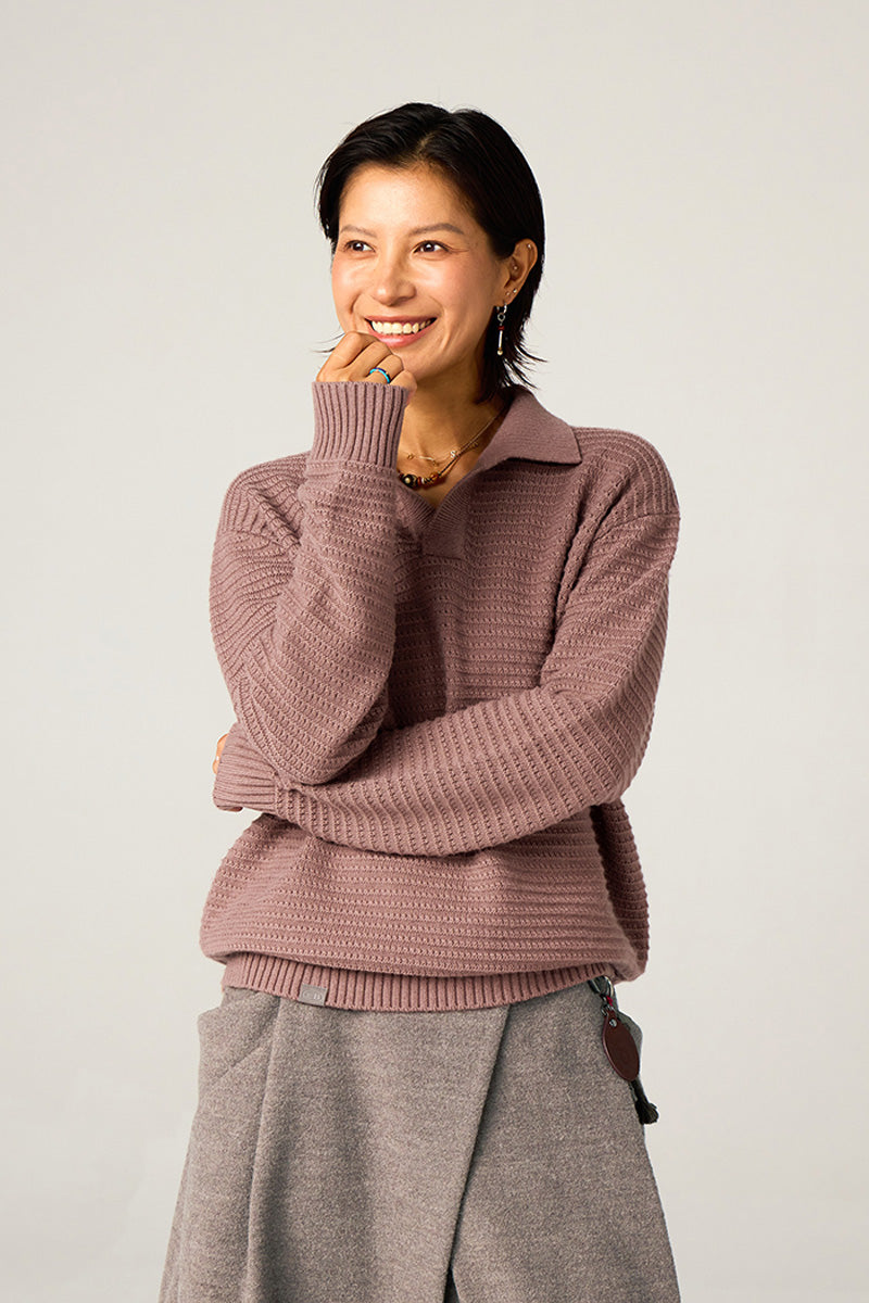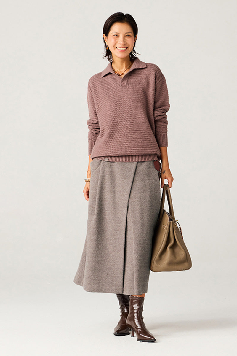 ウール49%を含む高品質混紡糸を使用。柔らかく肌触りの良い繊維が、秋から冬にかけての季節に最適な温かさと通気性を提供。
