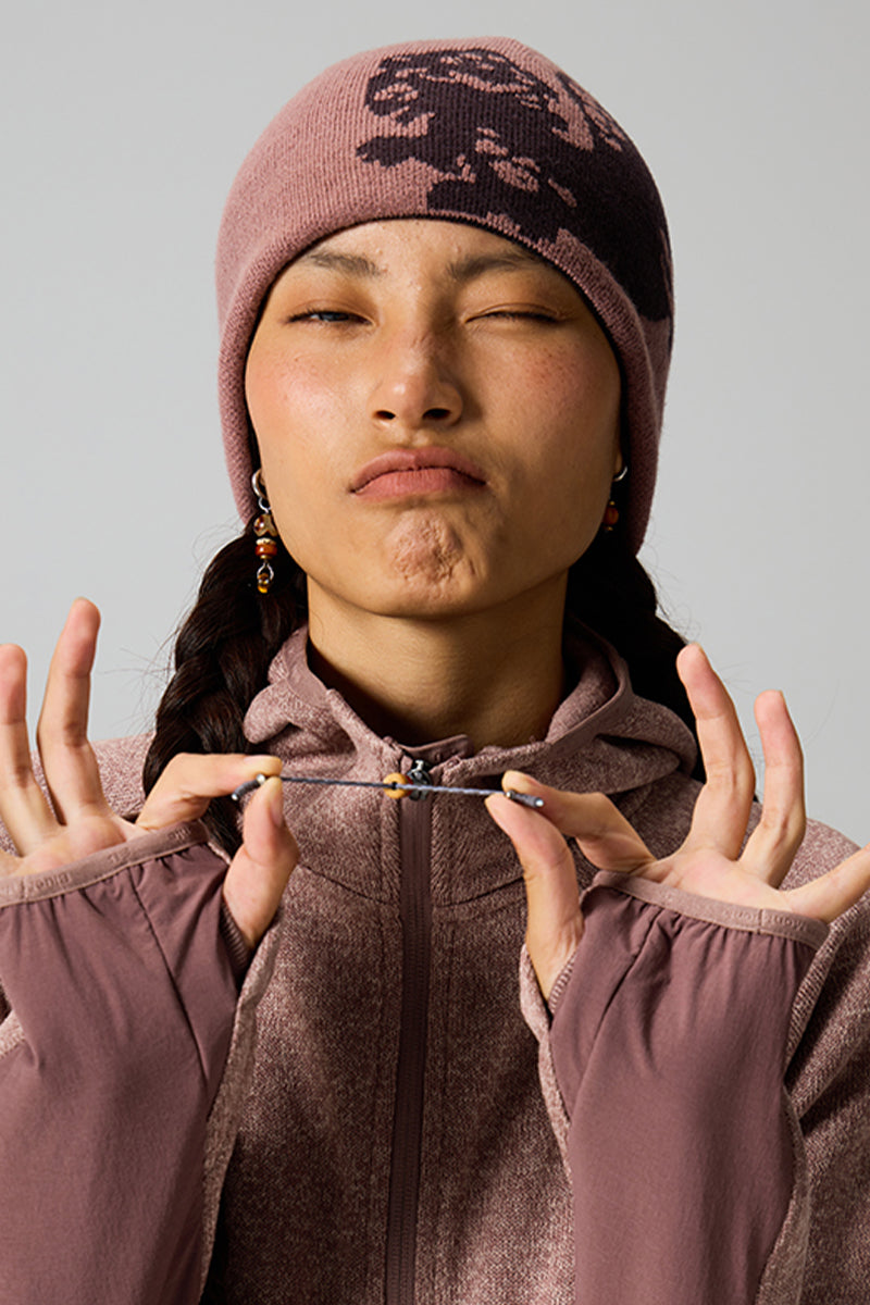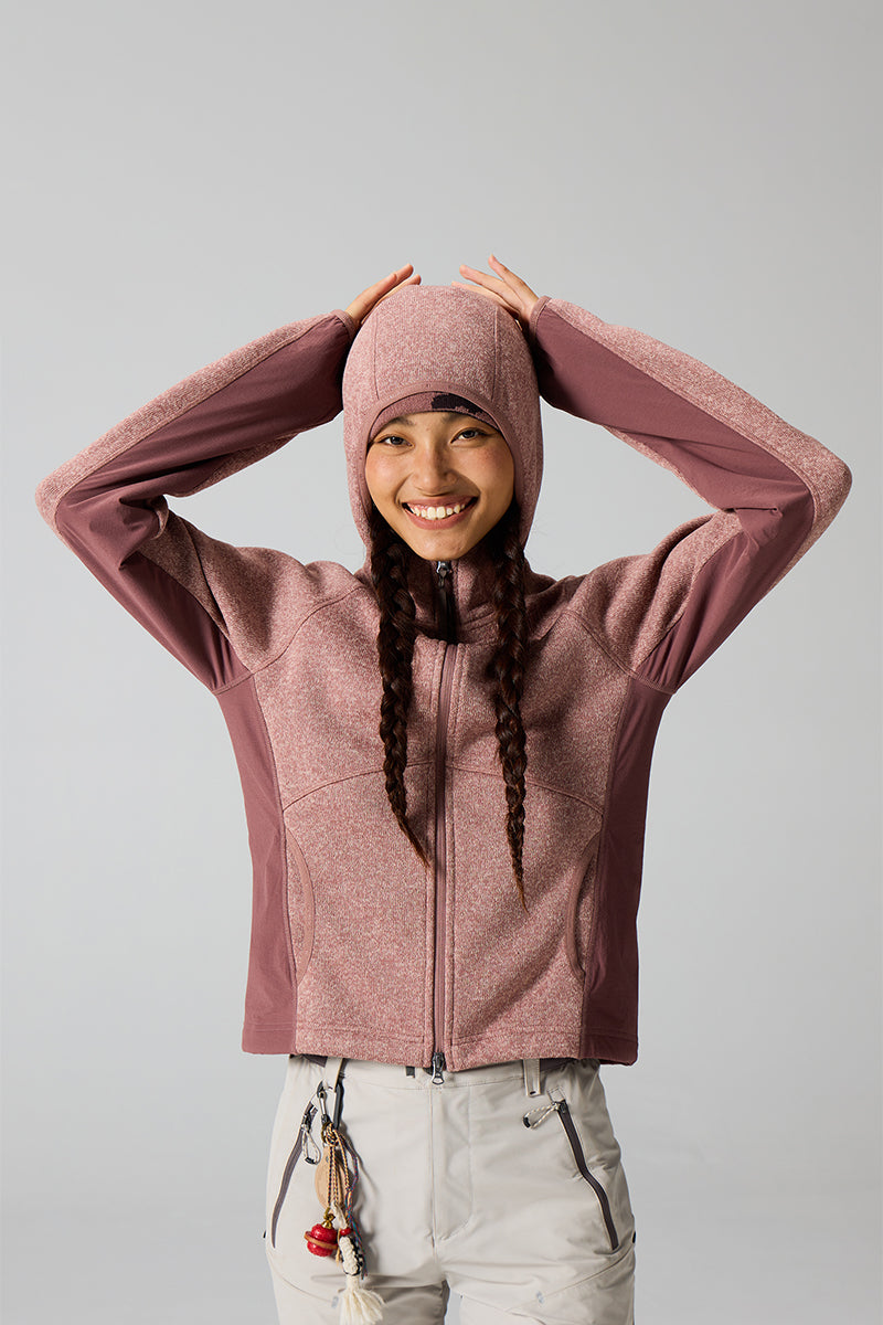 頭部にフィットしやすく、風の侵入を防ぎ、保温性も向上。