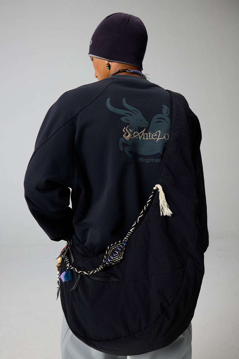背面は水プリントと刺繍で高原の動物の図案が施されています。