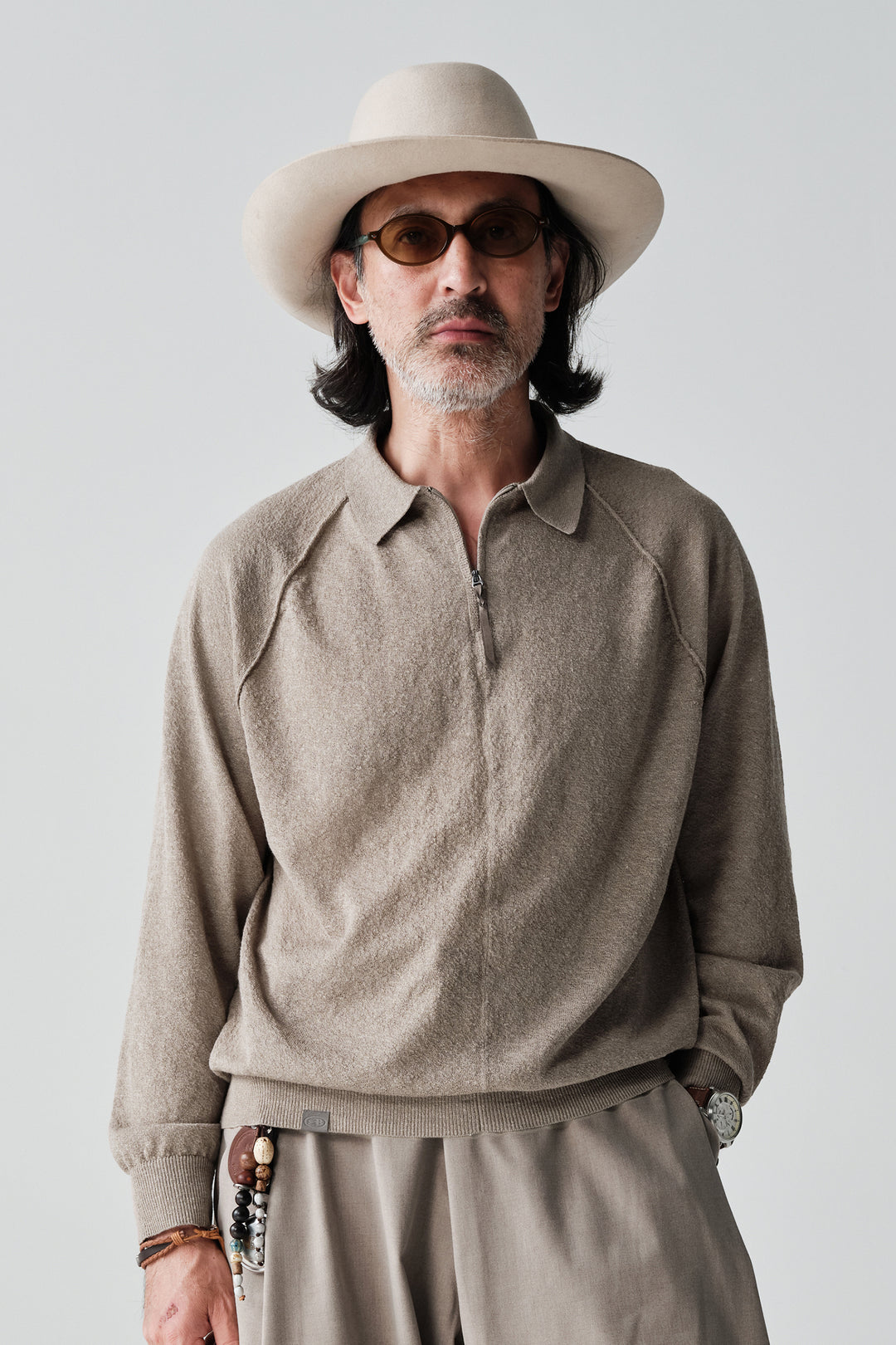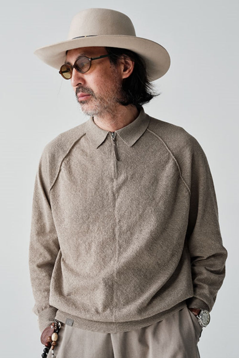 ウールハーフジップロングスリーブニットセーター25BLMS007