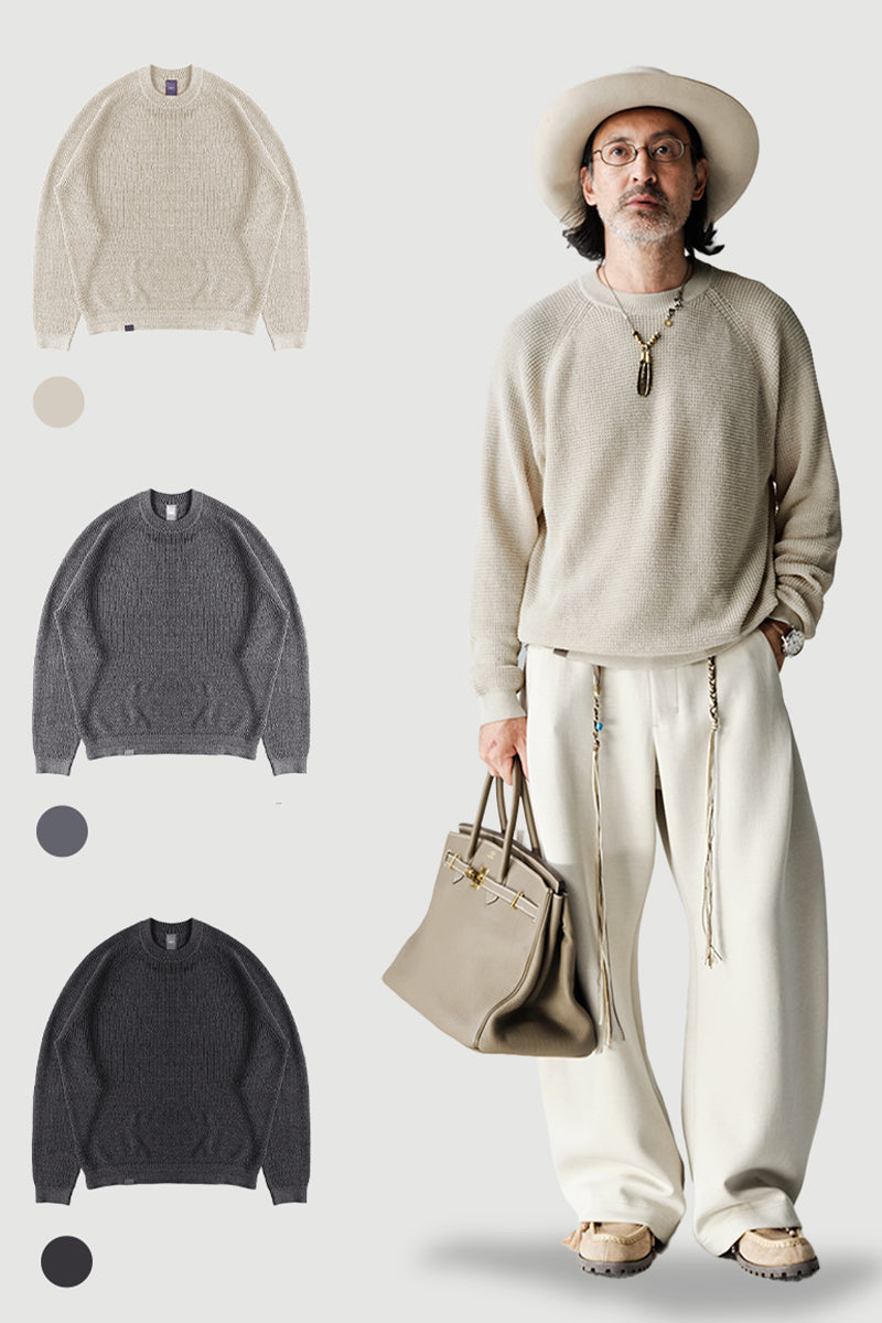 ウールクルーネック長袖ニットセーターNLBLMZS002