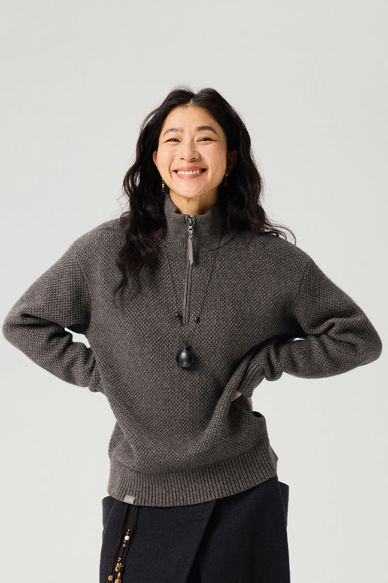 ウールハーフジップロングスリーブニットセーター25BLMS007