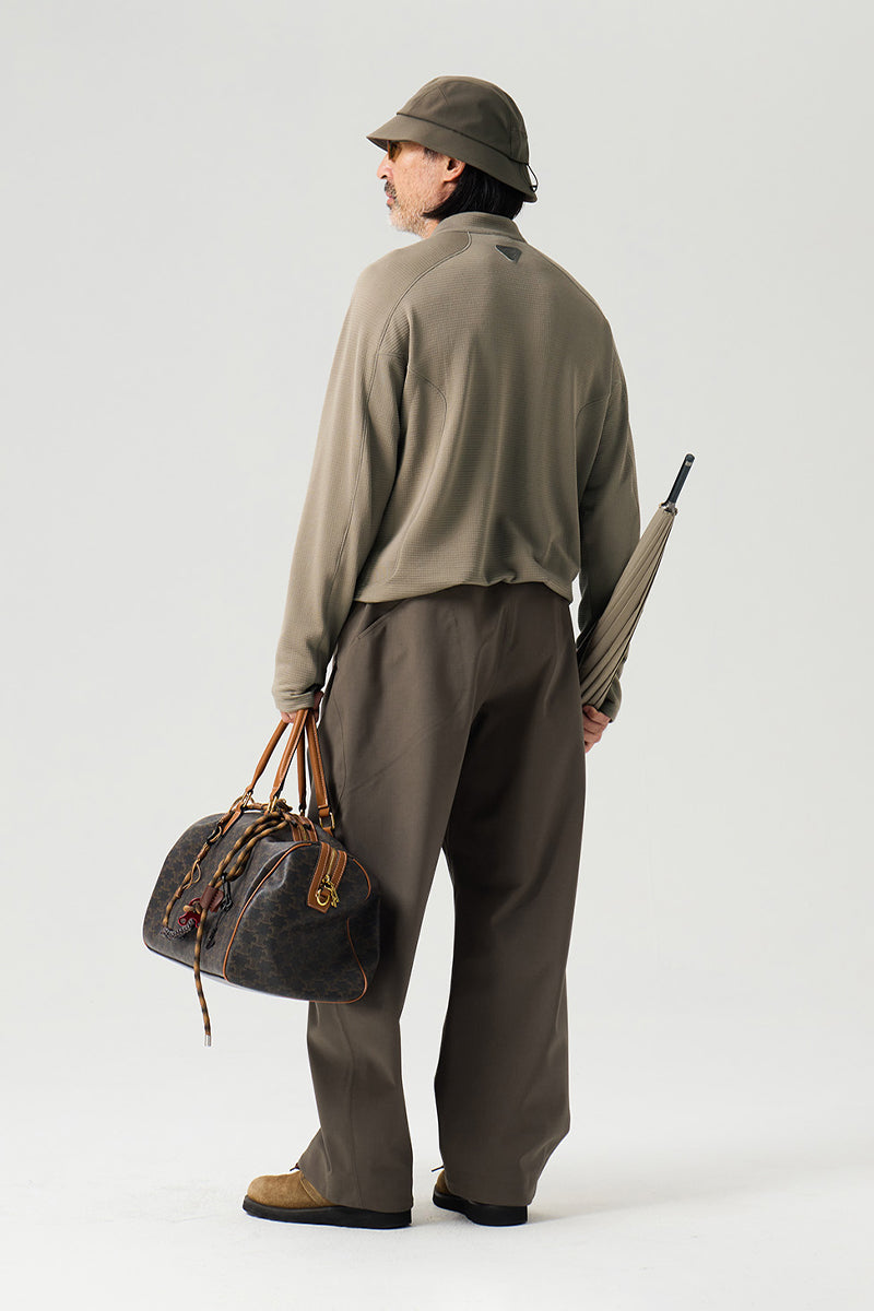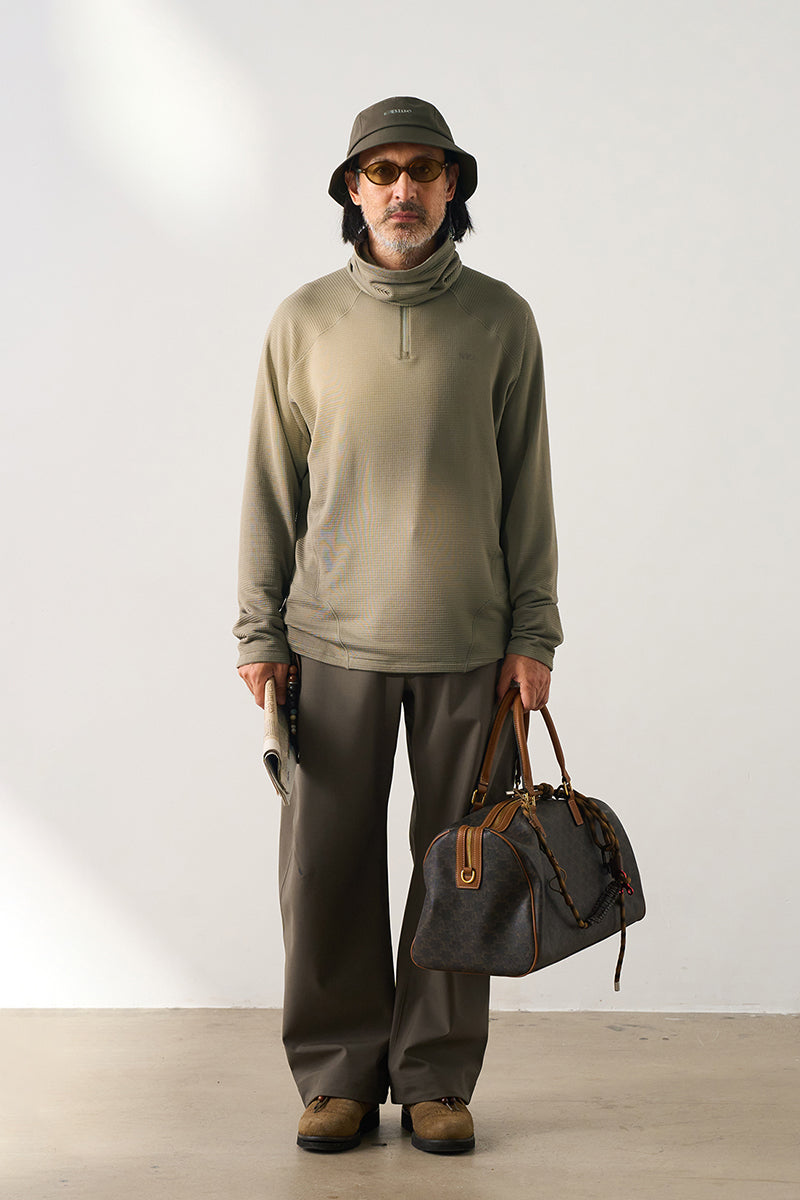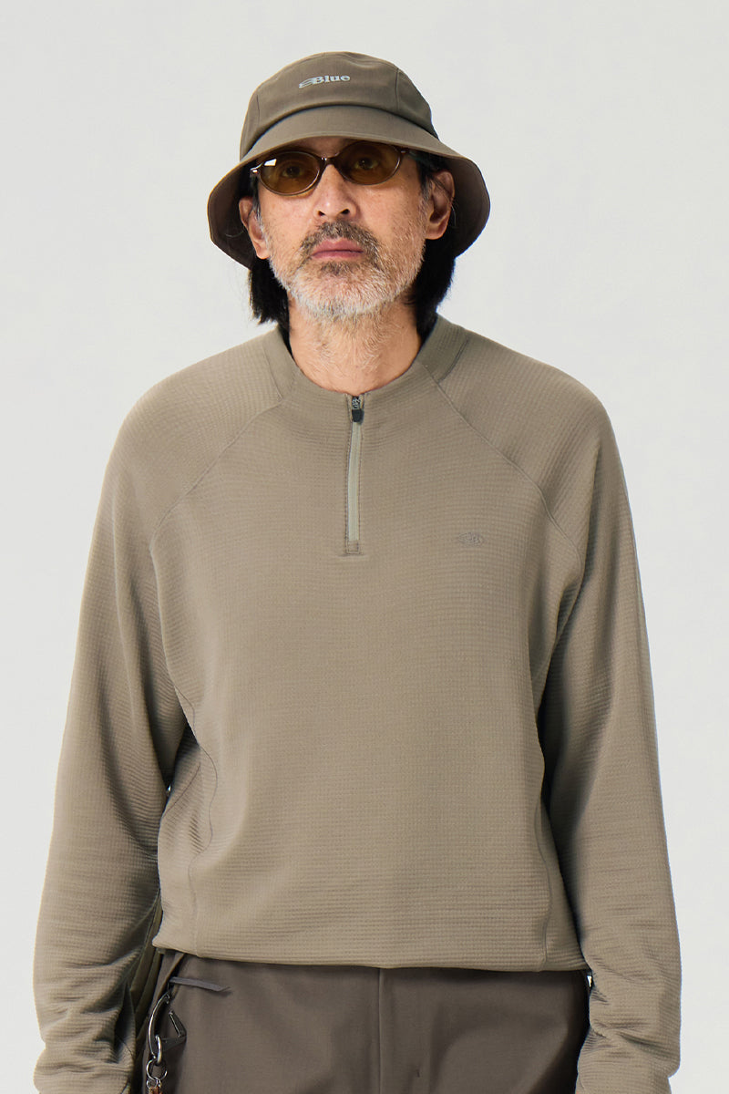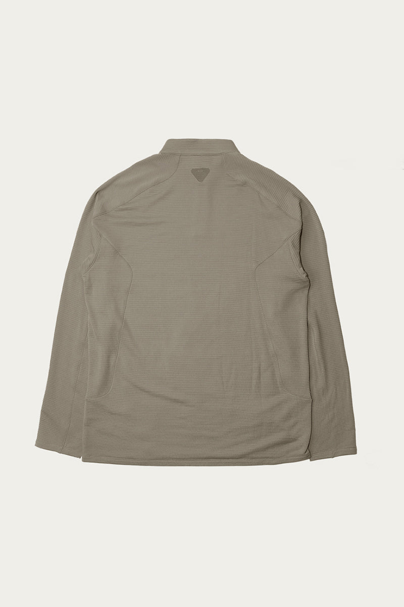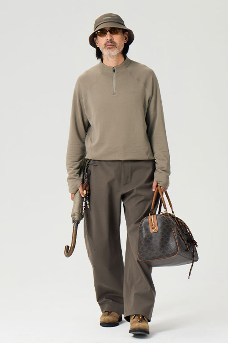 首元には半開きタイプのジップを配置しています。着脱が簡単で、風の侵入を防ぎながらも、通気性を確保できます。スタイリッシュなシルエットを演出しつつ、機能性も兼ね備えています。