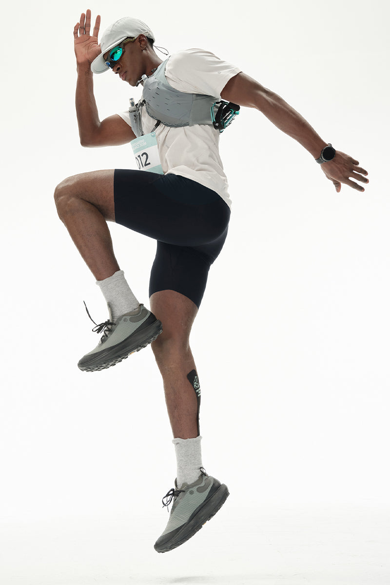 SITP高弾性圧縮素材と多機能ポケット設計を採用し、夜間反射「カエルの瞳」ロゴで安全性を高めた、トレイルランニング専用高性能ウェア。素材設計