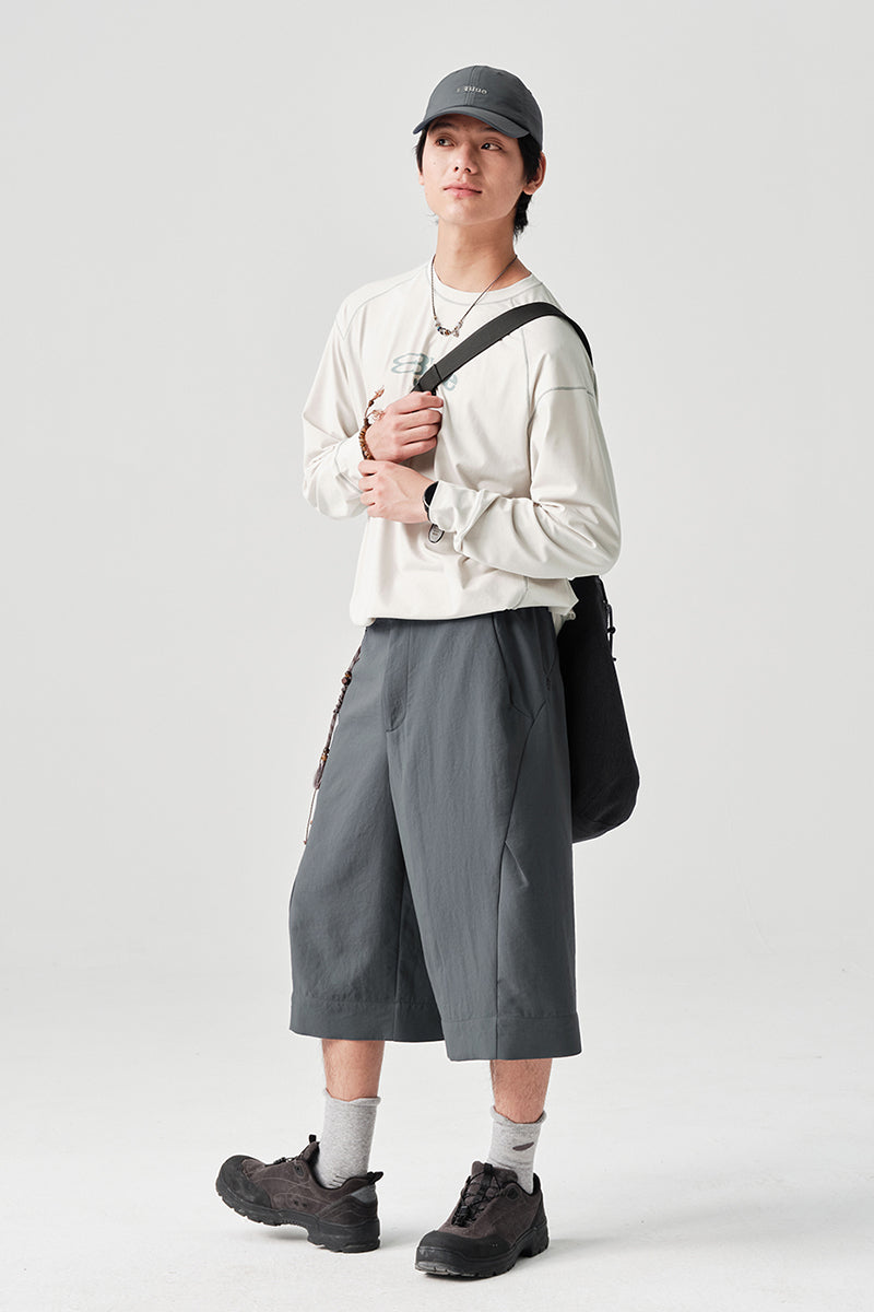 ゆとりのあるリラックスフィットのパンツスタイルに、すっきりとした松緊ウエスト設計を組み合わせ。日常での着用が気軽に、動きやすく、さまざまな体型にフィットする万能なデザイン。