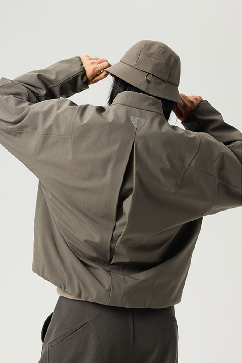 クラシックなジャケットスタイルに、ミニマルなデザインと洗練された構造を融合。小Vネックとスッキリとしたシルエットが、上品かつ実用的な印象を与えます。