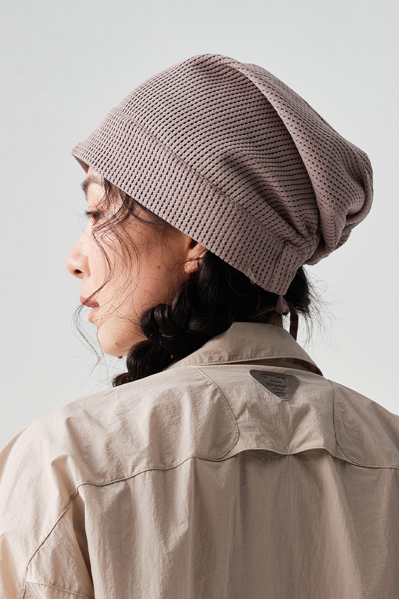 ワッフル編みドロストリング付き帽子NLBLAML004